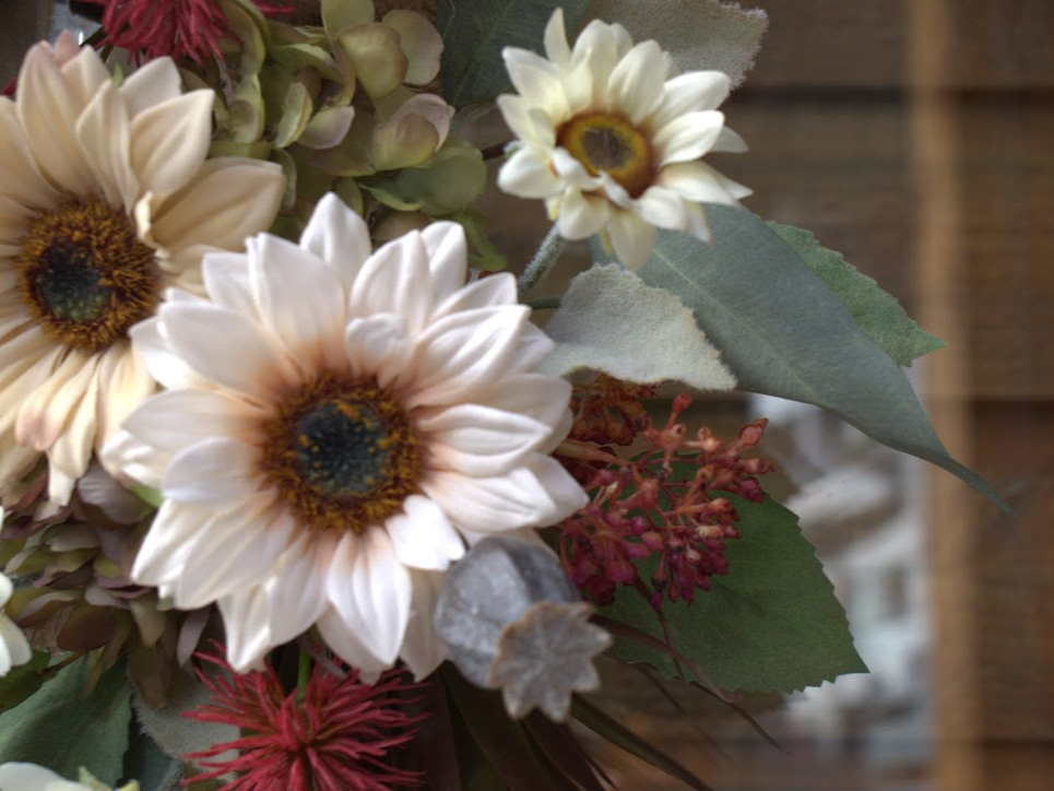 今年の向日葵は白!大人っぽいお花の組み合わせをお楽しみください。
