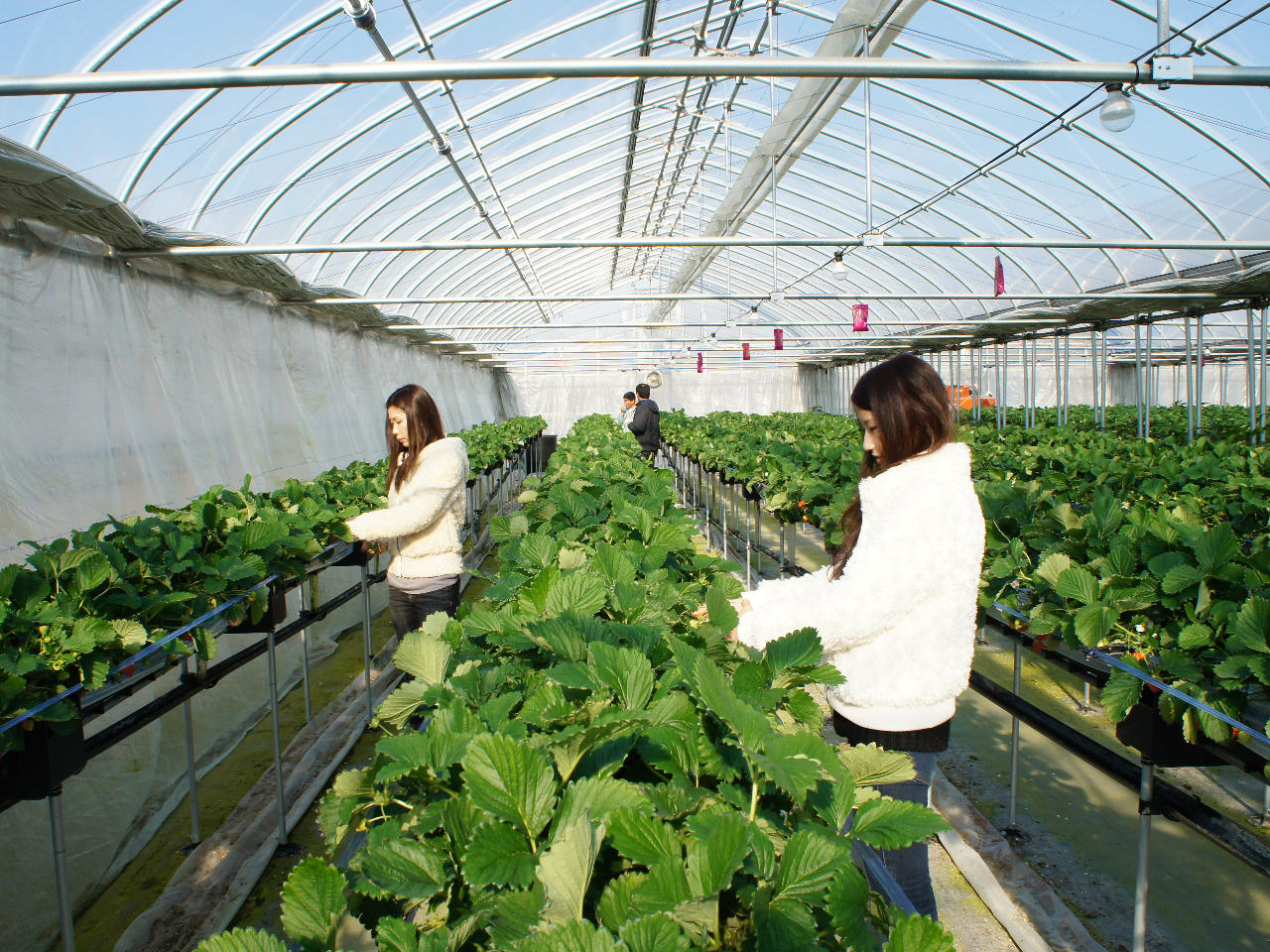 富津アクアファームは、千葉県で最大級1,800坪の広さのいちご狩り農園です。