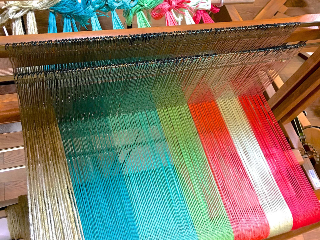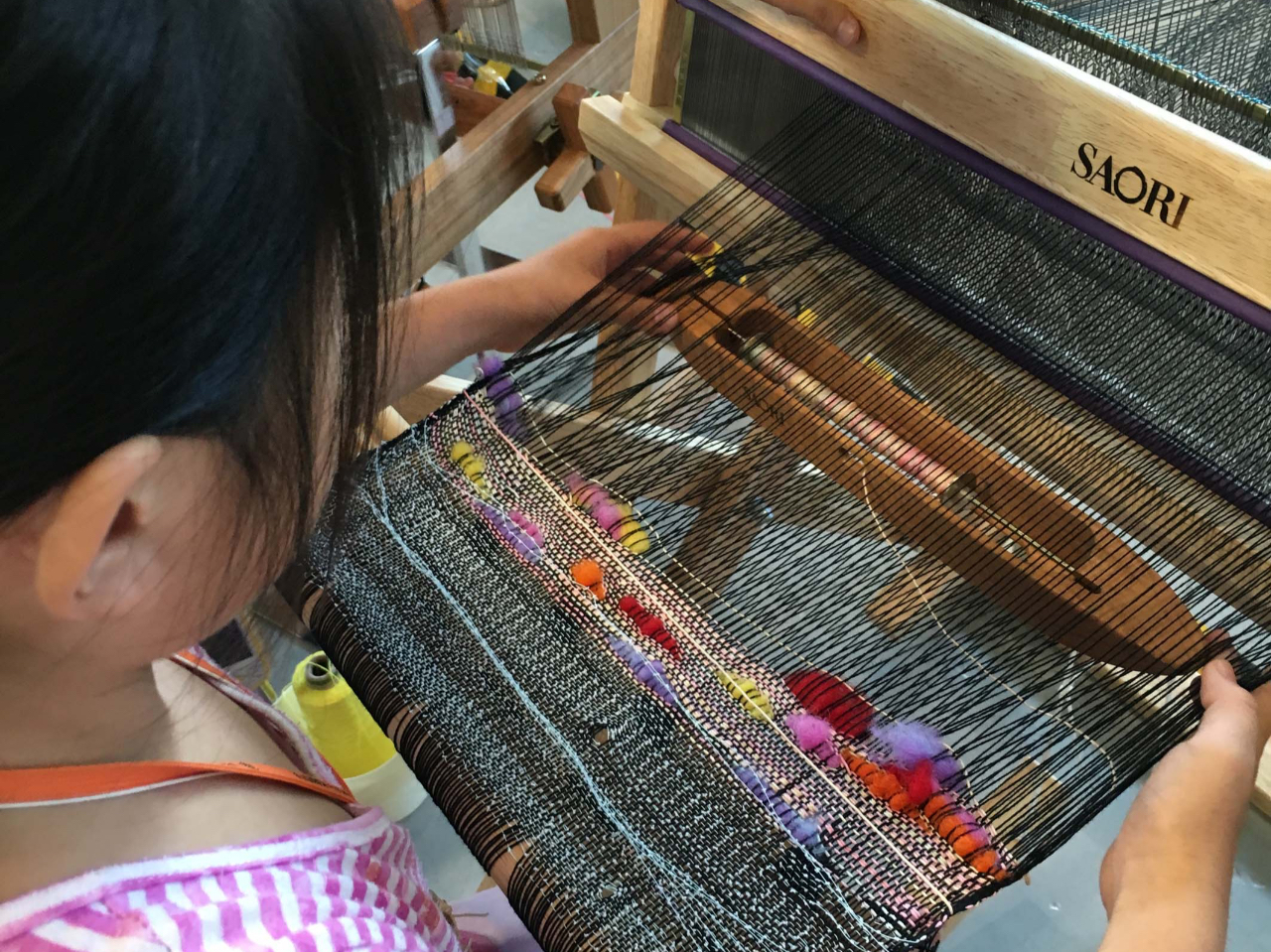 初回から誰にでも簡単にできる、さをり織り機を使っての織物体験です。たくさんのカラフルな色の中から、自分の好きな色を選んで、好きなように織れます!簡単なので、初心者でもすぐに織れます。心配はいりません。