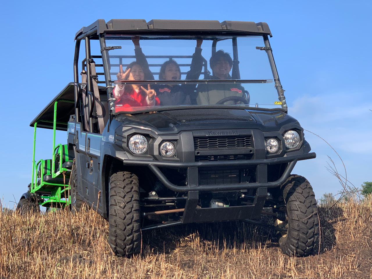 ドライバー兼ガイドがフルサイズ10人乗4輪駆動大型バギーで安全にご案内、記念写真付き。