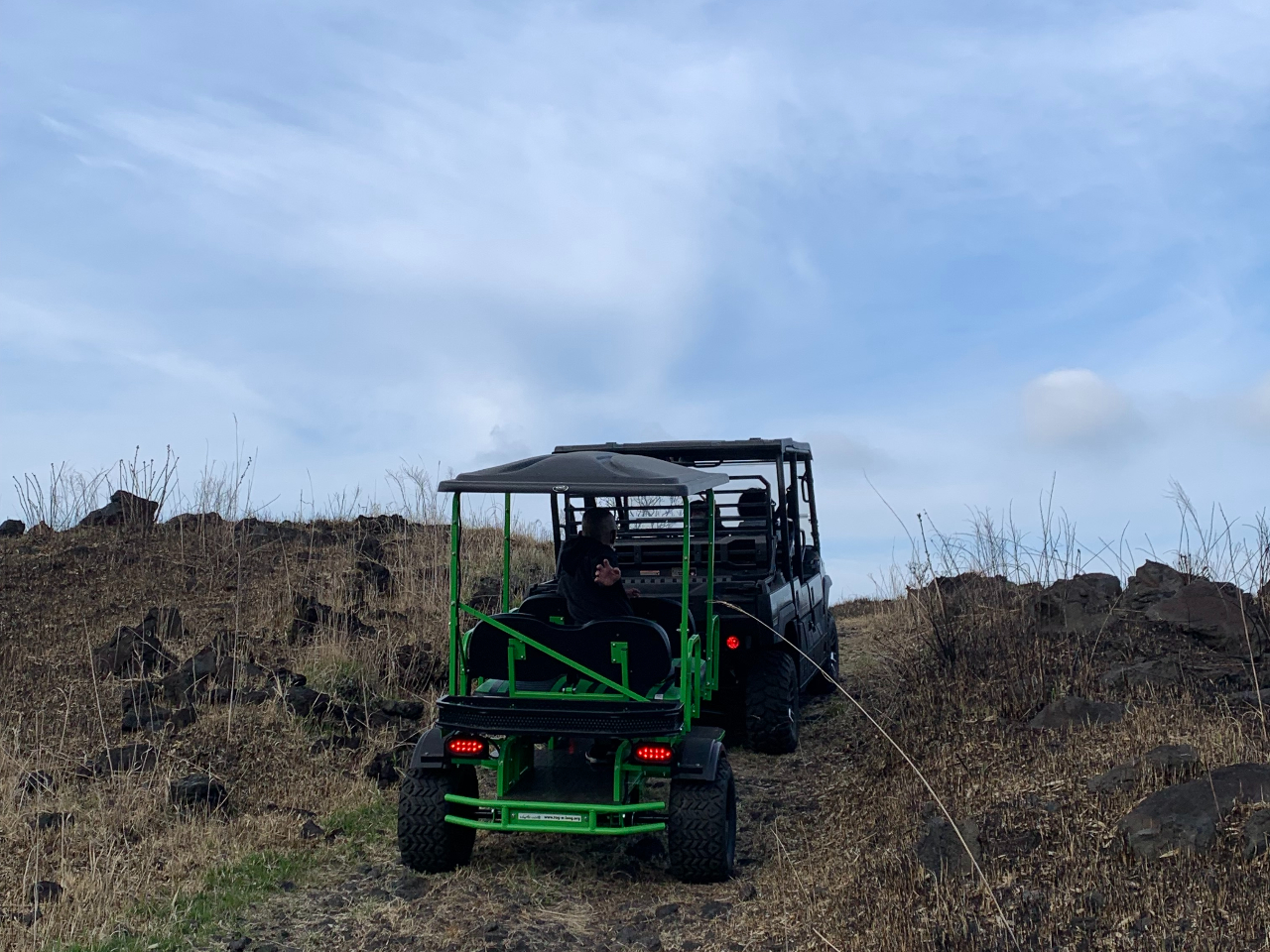 ドライバー兼ガイドがフルサイズ10人乗4輪駆動大型バギーで安全にご案内、記念写真付き。
