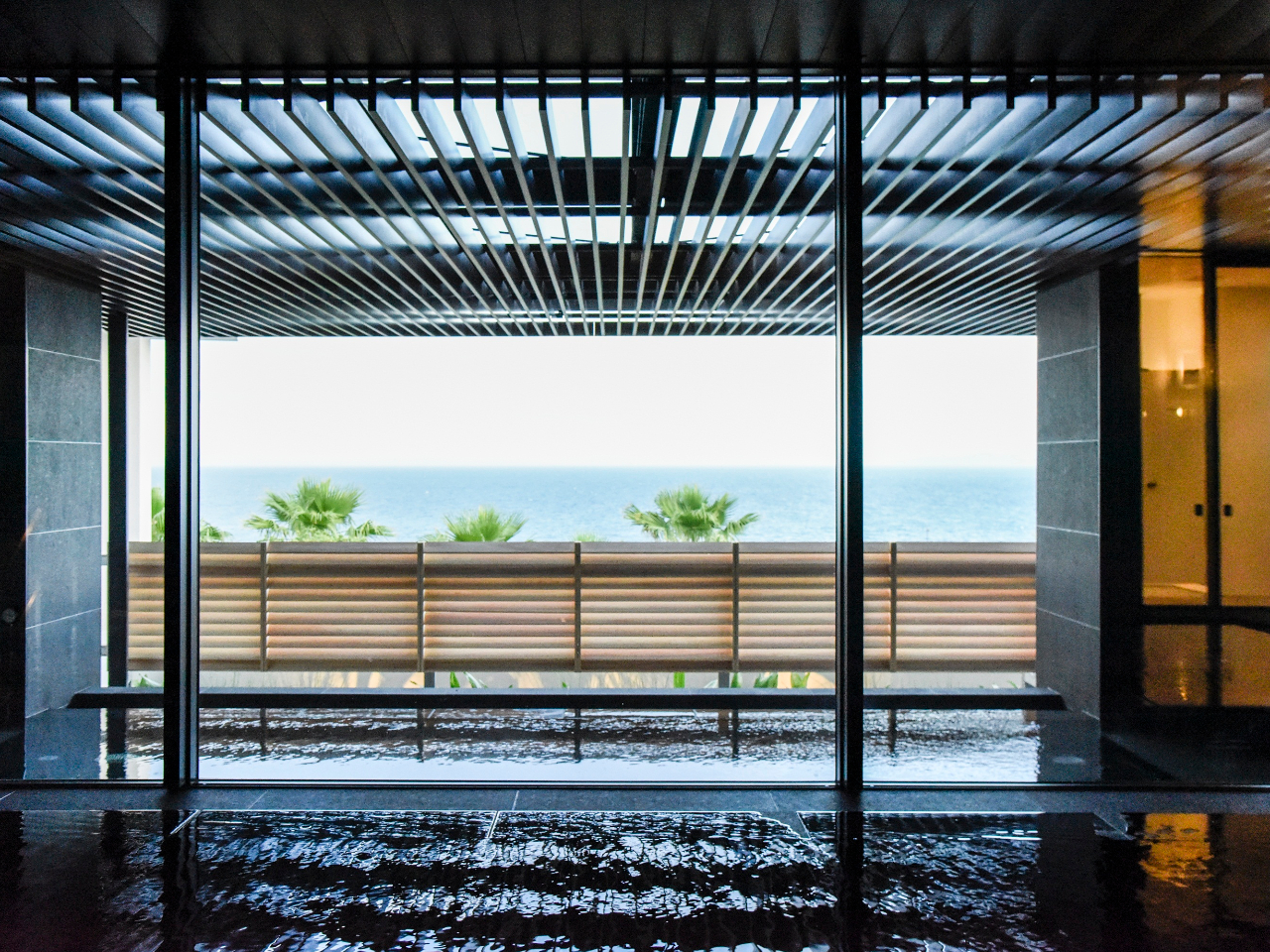 身体をあたためる塩分を含む「大磯温泉」を源泉とした露天風呂と内風呂を男女各1つずつご用意しております。長さ8.5メートルの露天風呂からは太平洋を一望できます。