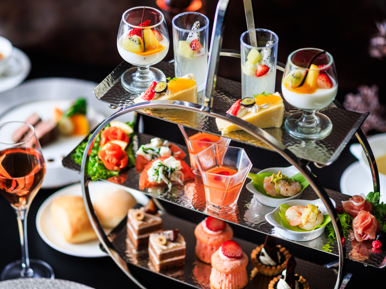 食事をメインに、お酒とともにゆったりと楽しむ「ハイティー」。季節のオードブル、デザートに加え、香り高いトリュフが香る「国産牛フィレ肉のグリル トリュフソース 温野菜添え」をお楽しみいただけます。