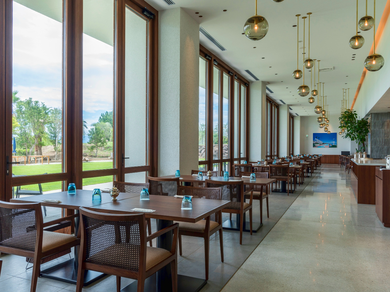 窓の外に広がる海とガーデンを眺めながら、優雅なランチタイムをお楽しみください。