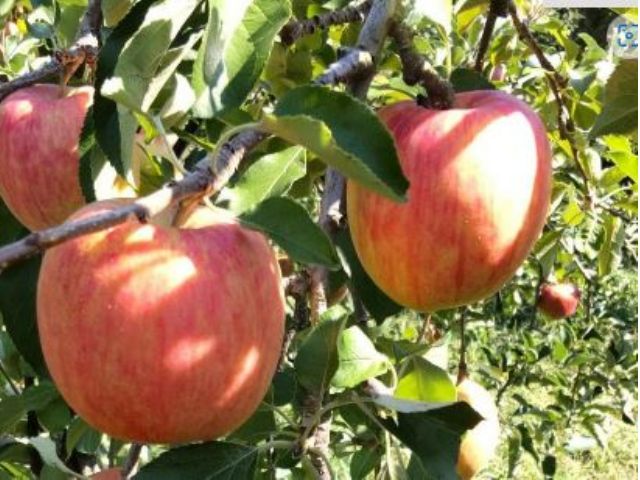 お店のすぐ横にて、りんご狩りを楽しんで頂けますが、種類によって数百メートル離れた畑にご案内することもあります。紅玉(こうぎょく)、秋映(あきばえ)、、シナノスイート、、サンふじと、色々な種類の味を楽しんで頂けます。