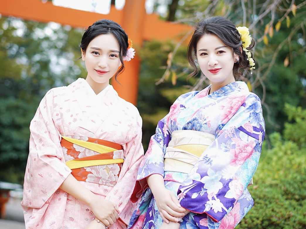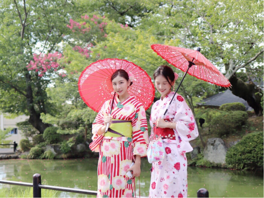 女性2名でのプランです。嬉しいヘアセット付き♪着物・浴衣レンタル・着付け体験
