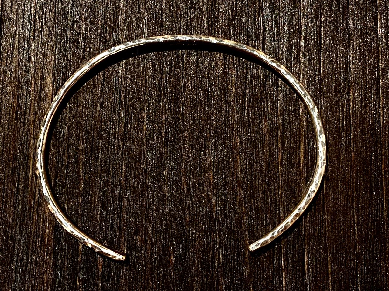 表面、両サイドの計3面を打ち込んだシンプルで他のアイテムとも合わせやすいバングルです。