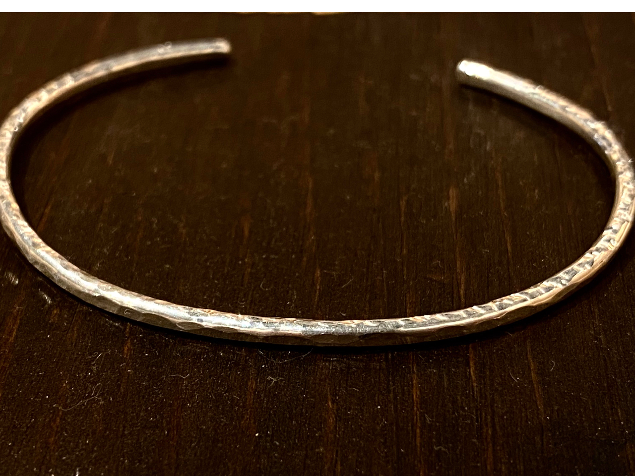 シルバー950地金を金槌で叩いて模様をつけるバングル制作を体験していただきます。