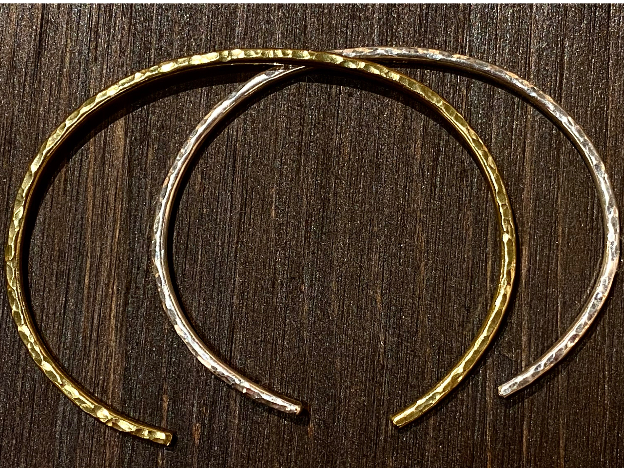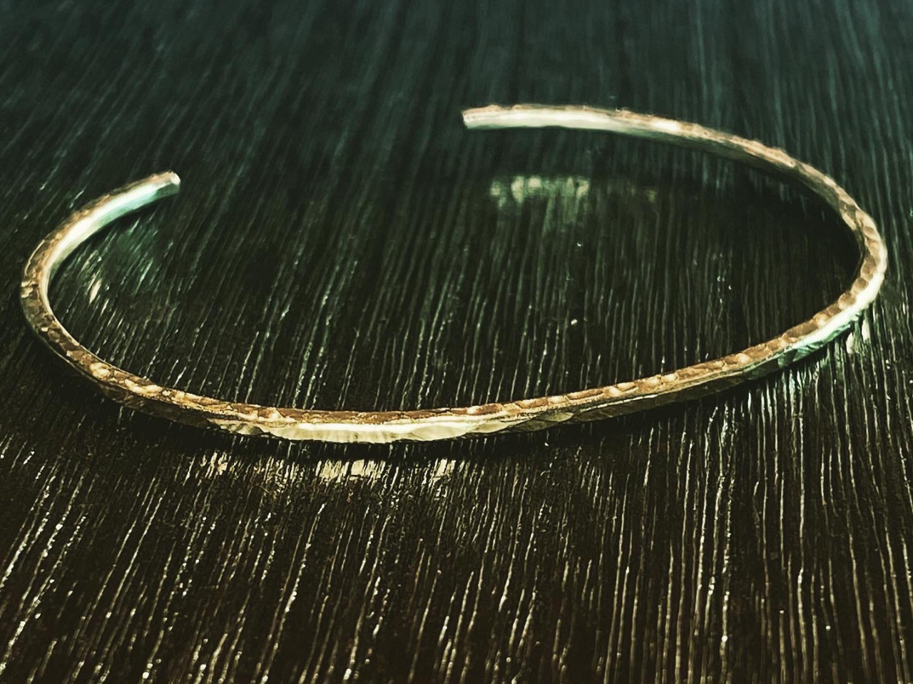 シルバー950地金を金槌で叩いて模様をつけるバングル制作を体験していただきます。