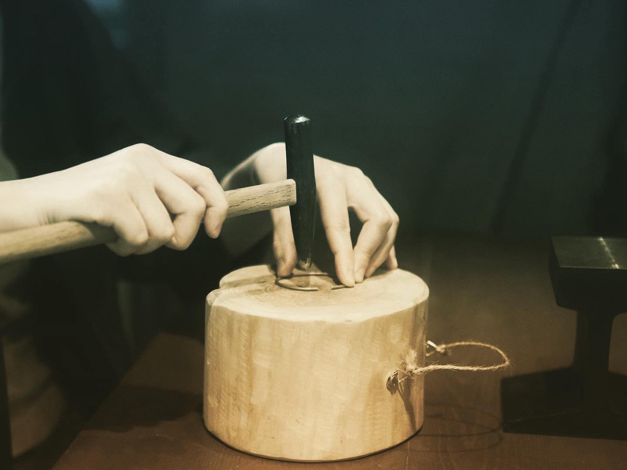 【函館駅前】シルバー950地金を金槌で叩いて模様をつけるバングル制作体験