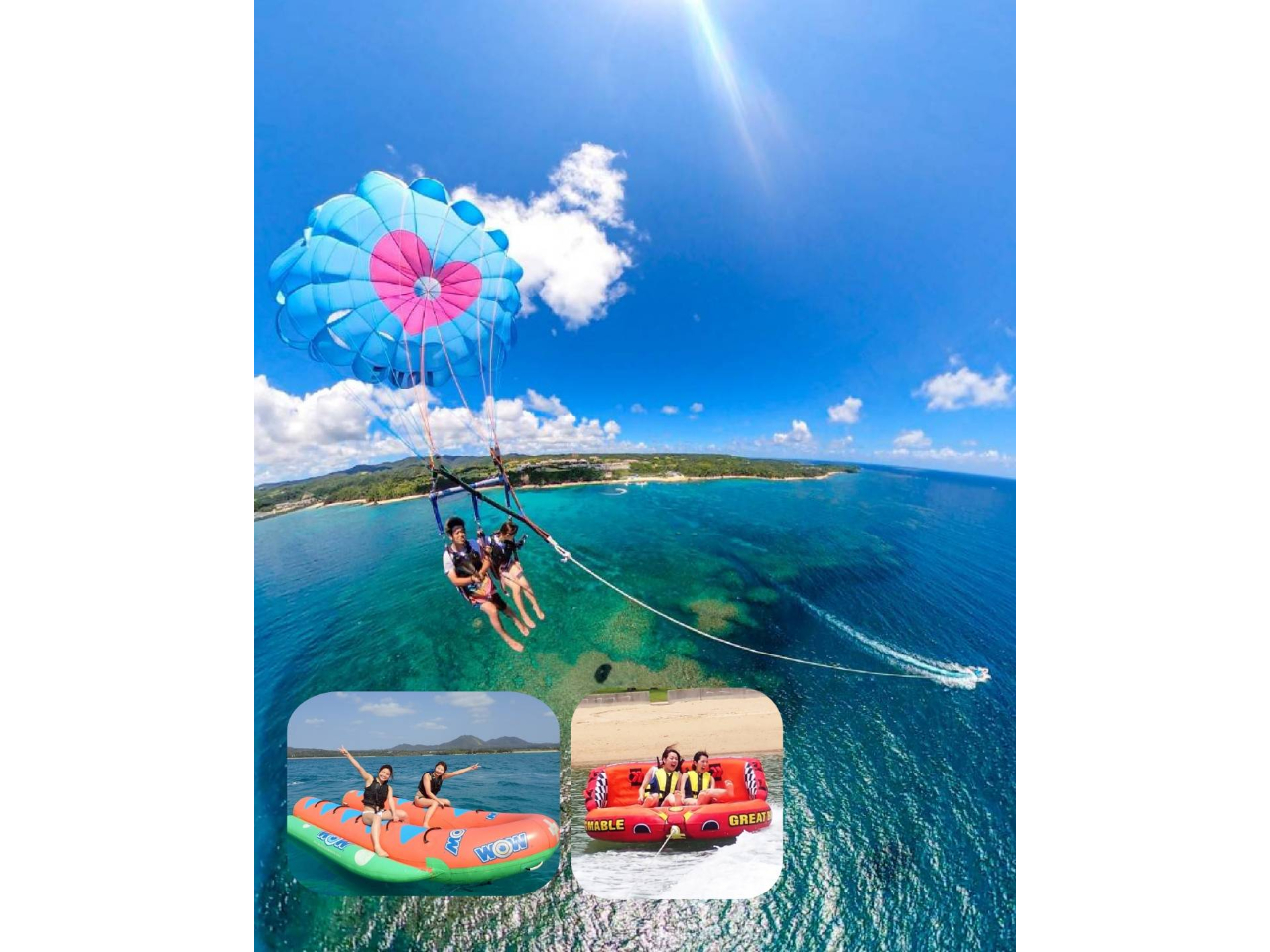 マリンスポーツの方はヒーピービーチでの開催です。そこでは、目視で分かるくらいの速すぎるスピードで振り回されます!マリンスポーツの方は乗ってる最中の写真を撮って貰えます!ガイドの方もとても優しく接してくれ、沢山お話して下さり、本当に楽しかったです!!!一生忘れられない思い出です!