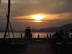 福山市 シーパーク大浜 因島大橋の裏に日が沈む時期も見物
