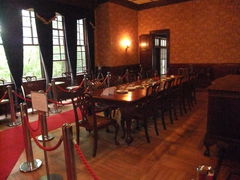 洋風な作りで、内装には金唐紙が使用されていました。