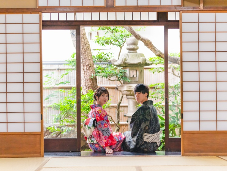 タイムスリップしたかのような伝統ある家屋と、四季折々で表情を変えるお庭を眺めながら、京都の町家でゆったりと着物レンタルをお楽しみ下さい。