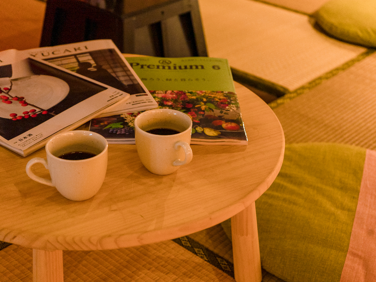 フロントにて入館受付をお済ませいただき、お渡しするお食事札をご注文時にレストランスタッフにお渡しください。館内のカフェでご利用いただけます。