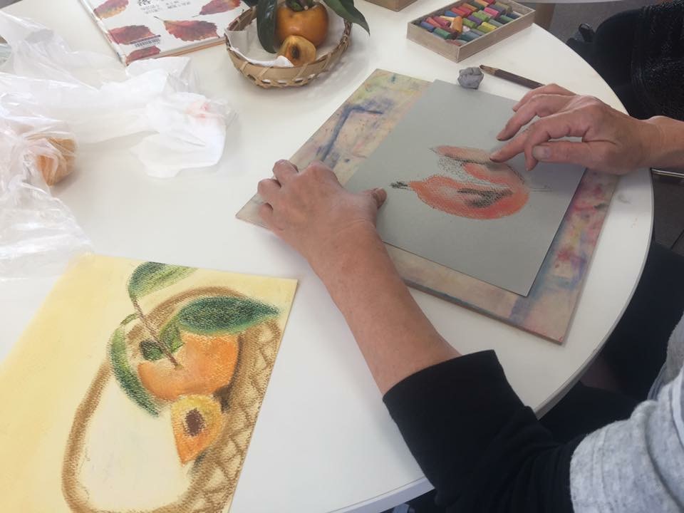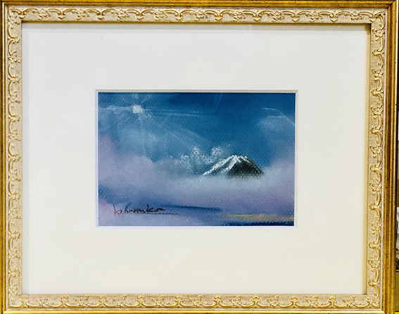 パステルカラーで淡い富士山を描いてみましょう♪葉書きサイズの絵は額縁に入れてお持ち帰りいただけます。