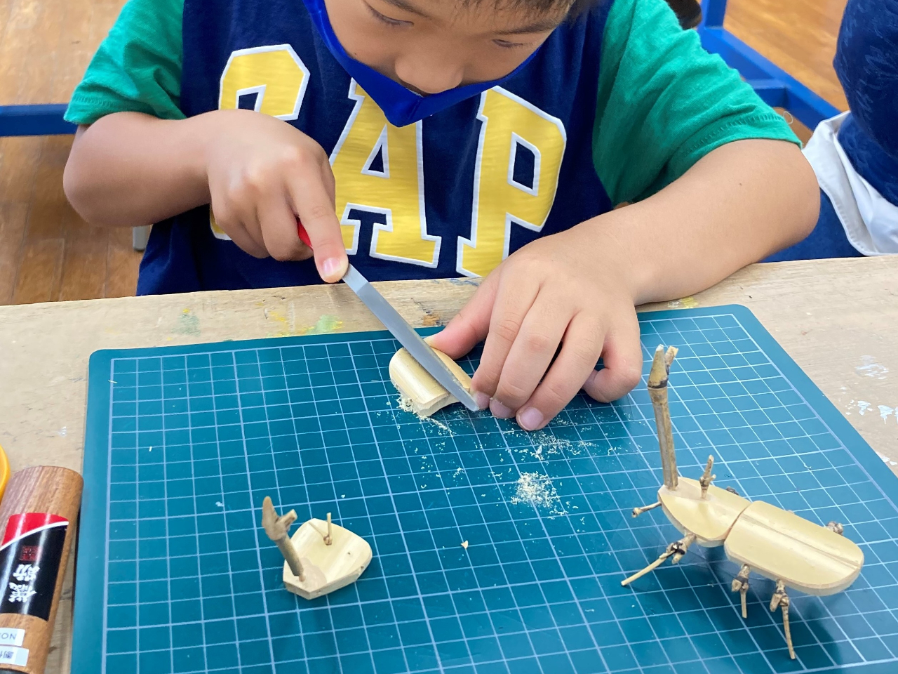 竹を削り組み合わせて恐竜や昆虫を作ろう。