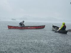 雨天決行です!初めてのカヌー前日もゲリラ雷雨が有り!当日も予報が出ていたが!キャンセル料が発生すると言うから嫌だけど!体験しました!無料で雨衣も貸してくれます〜簡単な説明を聞いて簡単にカヌーに乗れました〜大人だから楽しめたけど!子供は心配だ!湖に落ちてもライフジャケットが助けてくれます〜雷が鳴ってる間は木の影に隠れます〜予約は前日の方が良いかも〜