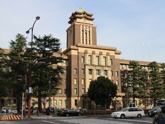 外観のみ見学しました。西洋式の建築で、時計塔の頂上に和風の屋根を載せる変わった様式の建物です。昭和初期の官公署の建築で流行していたそうです。