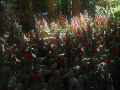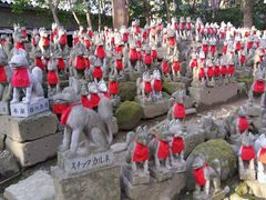 愛知県豊川市豊川町にある日本三大稲荷の一つ、豊川稲荷。室町時代に作られ、織田信長、豊臣秀吉、徳川家康らが信仰した。神社ではなく曹洞宗の由緒あるお寺だ。境内の参道には鳥居が立ち、本殿よりもさらに奥に進むと白地に赤い文字ののぼりが現れる。その先には、赤いよだれかけをつけた大小1000体以上の狐の石像、霊狐塚(れいこづか)があり、その数に圧倒される。この狐の石像は願いがかなった人々が奉納したものでいろいろな表情をしている。商売繁盛、金運のパワースポットとして観光客で賑わう。