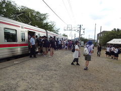 年に2日(夏季例大祭のとき)だけ本殿のある島に渡れる津嶋神社、そしてその最寄駅で同じく年に2日だけ営業されるJR津島ノ宮駅というレアな存在に惹かれ、お祭りの日にJRで行きました。 子供の神様だけあって、子連れ、特にベビーカーで来ている人が目につきました。 駅自体はノンステップとは無縁の、電車とホームの段差が激しいものですが、大勢の駅員さんが控えており、子供やベビーカー等の乗降がスムーズに行えるように厳戒態勢が敷かれており、安心に思いました。