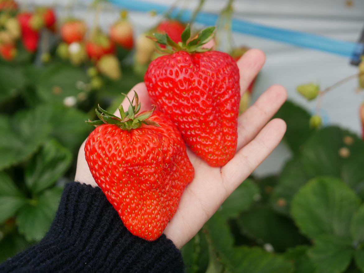 ◎全10棟、4品種約28,000株のいちごを栽培!地域最大級★いちご狩り