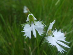 JR吉備線(桃太郎線)の服部駅から徒歩40〜45分で行けます。岡山自動車道の工事予定地に発見された湿地が保護されたものなので、駅を出て自動車道の側道を西にまっすぐ歩けば着きます。わたしがこの湿地の存在を知ったのはつい最近のことですが、絶滅危惧種に指定されているサギソウの自生地が、こんなに行きやすい場所にあるのは、本当に驚きです。サギソウのほかにキキョウも咲いてました。