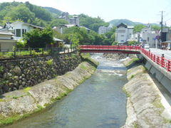 修善寺温泉街の中心を流れる清流桂川には数多くの橋が架かっています。「恋の橋めぐり」としてアピールしているようですが、朱色も鮮やかな桂橋は「子宝祈願」の橋でした。