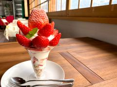 隣接する直営カフェ「夢街道farm67」では、数量限定「どデカいちごパフェ」やご当地ソフトなどの旬のスイーツやコスタコーヒーが味わえます♪