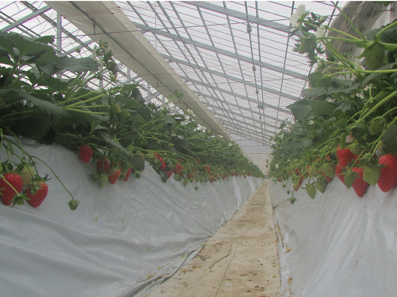 数列並んでおり、手前がとちおとめ、奥がやよいひめでした。