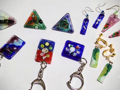 ママたちはピアスとイアリング、こどもたちはピンバッチとブローチ、キーホルダーを選びました。