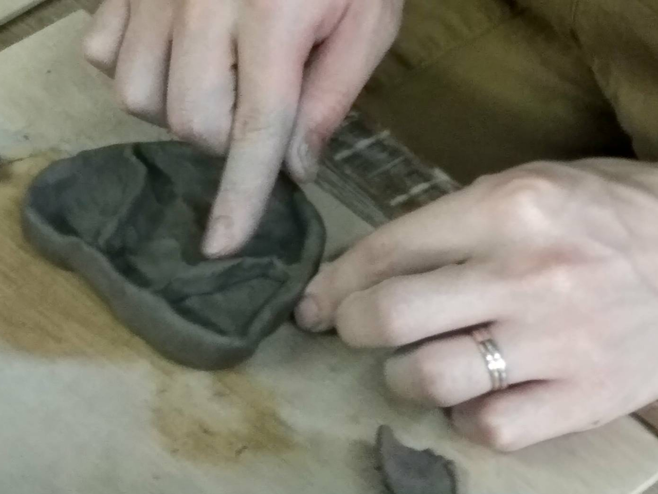 1つの粘土のかたまりから、指でつまみ出すようにして器の形を作っていきます。