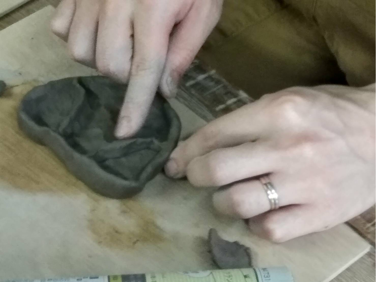 1つの粘土のかたまりから、指でつまみ出すようにして器の形を作っていきます。