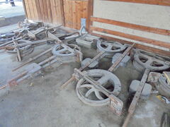 松代観光協会に寄ったあとで、こちらの駅の見学。廃線になるまで使われていた駅舎が残っています。ホームに出てみると、すでにレールは無くなっていました。駅舎の中は当時の乗客で賑わった雰囲気が少し残っています。切符窓口は観光ポスターなどで覆われています。駅舎の正面はタクシー乗り場に。観光案内板や汽車ポッポの歌碑も設置されて興味深いです。