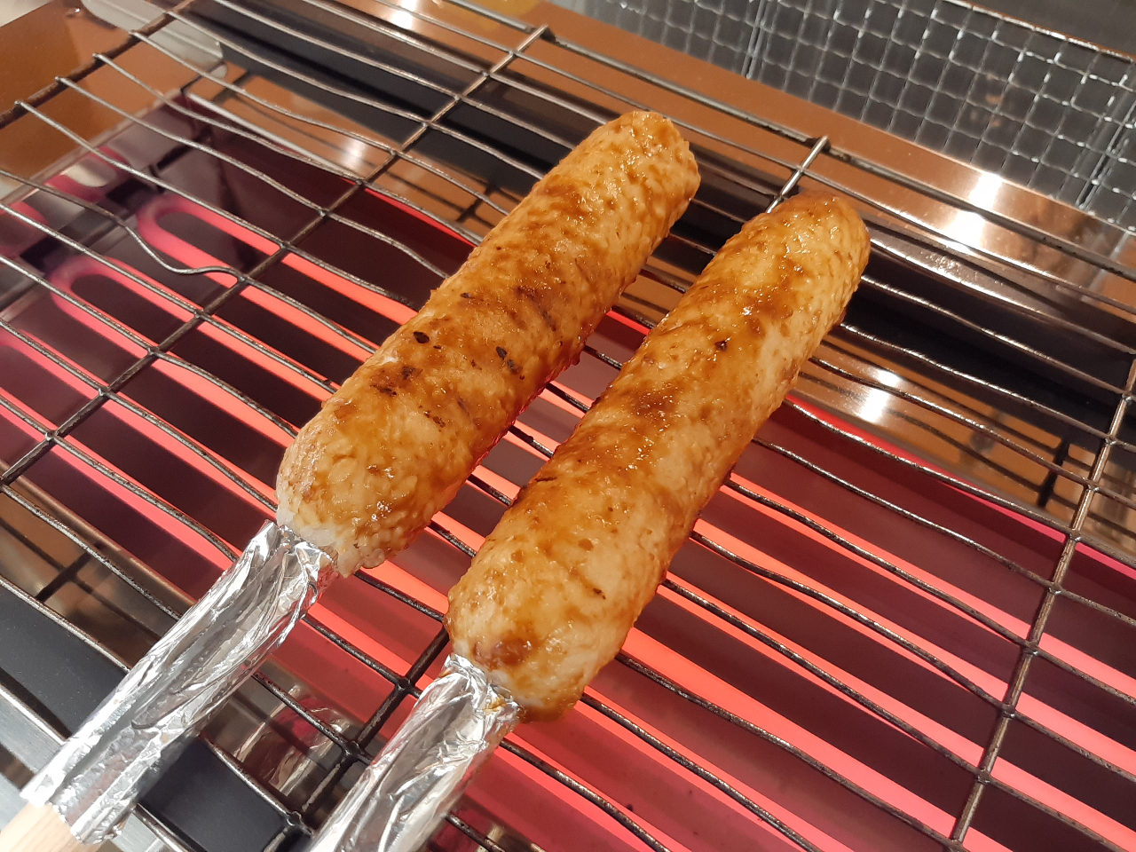 こんがりきつね色に焼いたたんぽに甘いクルミ味噌をぬって、ご賞味いただきます。