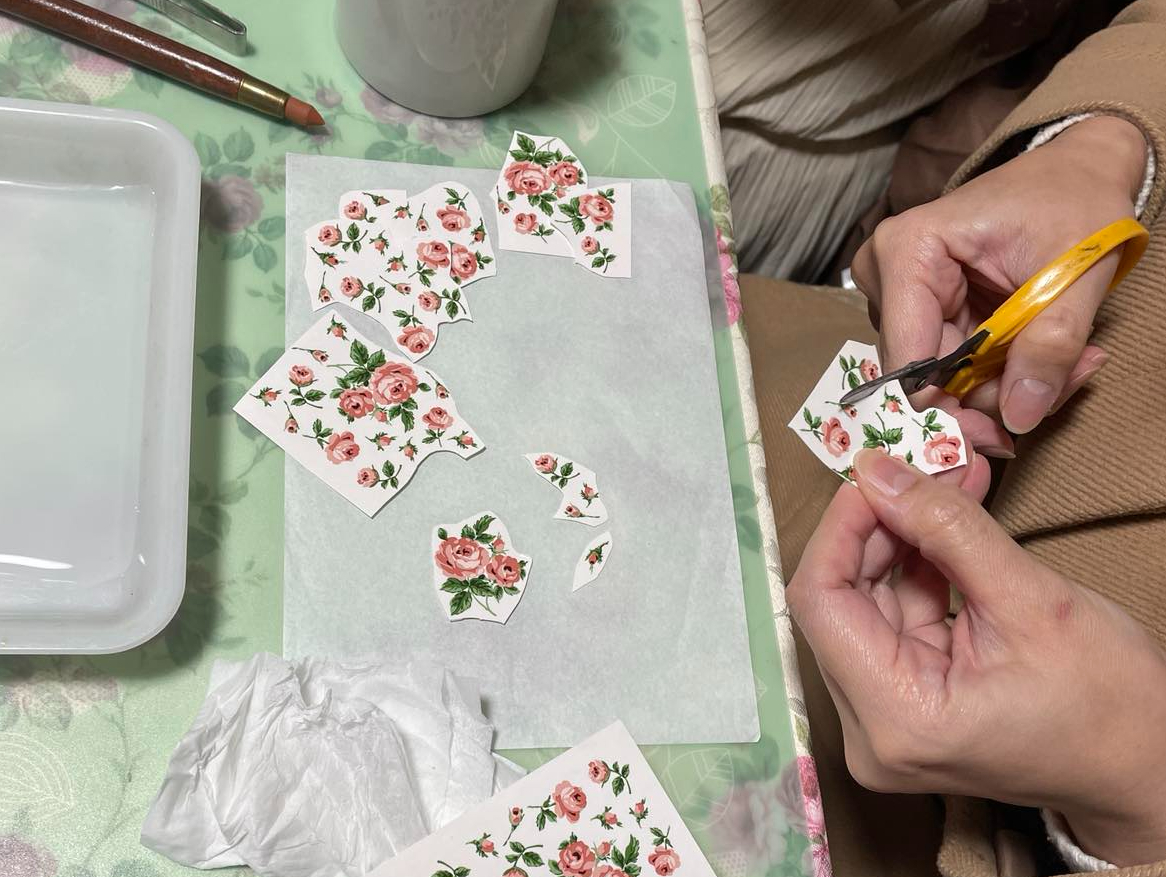 転写紙は、沢山の種類をご用意しておりますのでお好みの柄を選んで頂けます。ポーセラーツの魅力を体感できるので、初めての方にピッタリのプランです。転写紙の貼り方やデザインのしかたなど、プロのインストラクターが丁寧にお教えするのでご安心くださいね。楽しくて実用的なハンドクラフトをぜひ一緒につくりましょう!