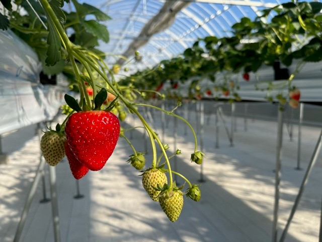 成長途中のいちごです!ここからさらに真っ赤に色づいていきます♪(※2022年12月20日撮影)
