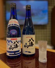 写真左は「八海山 特別本醸造ブルーボトル」、写真右は「八海山 特別純米酒ブルーボトル」」です。