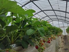受付で名前を伝え、じゃらんさんからの申込みですね、雨天時でもあり、足元に気をつけてくださいとスムーズに案内。時間制限なく、自由解散してよいとのこと。いちごハウス内は数種類あり、味わいの違いも楽しみました。いちごの棚が高めなので、採取しやすかったです。他の方も書かれているとおり、座って休む場所が少なく、小さな子ども連れや御高齢の方は、休みながら時間を過ごすのは難しいかも。近くのいちごの自動販売機が売り切れていたので、お土産が買えなかったのが残念でした。