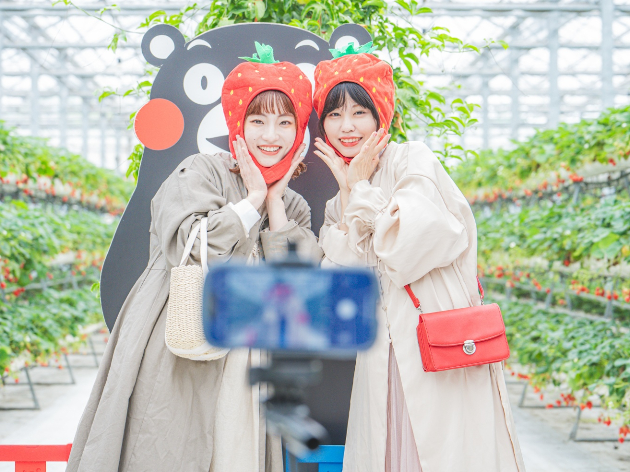 阿蘇の人気観光スポット「阿蘇ファームランド」の園内でいちご狩り!