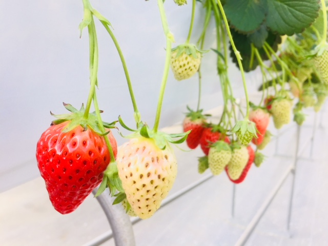 ハウスに入ると鈴なりなイチゴが目に入り、ワクワクした気分になります。