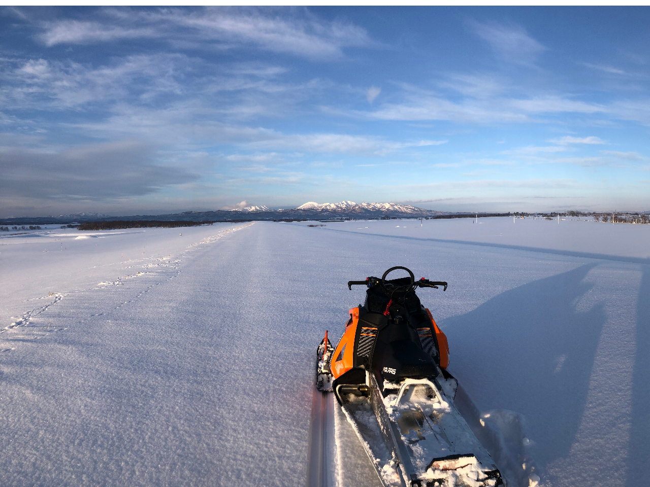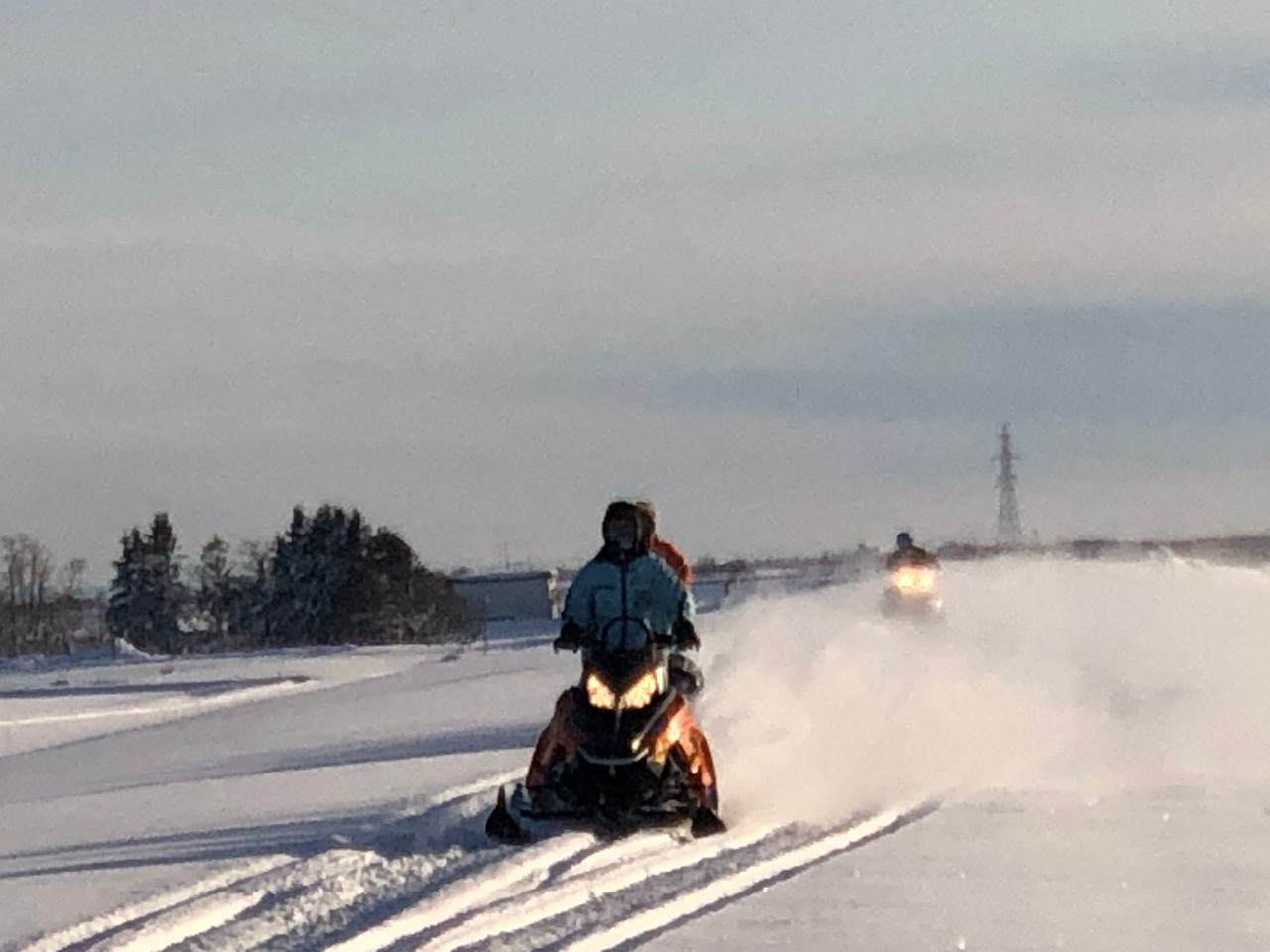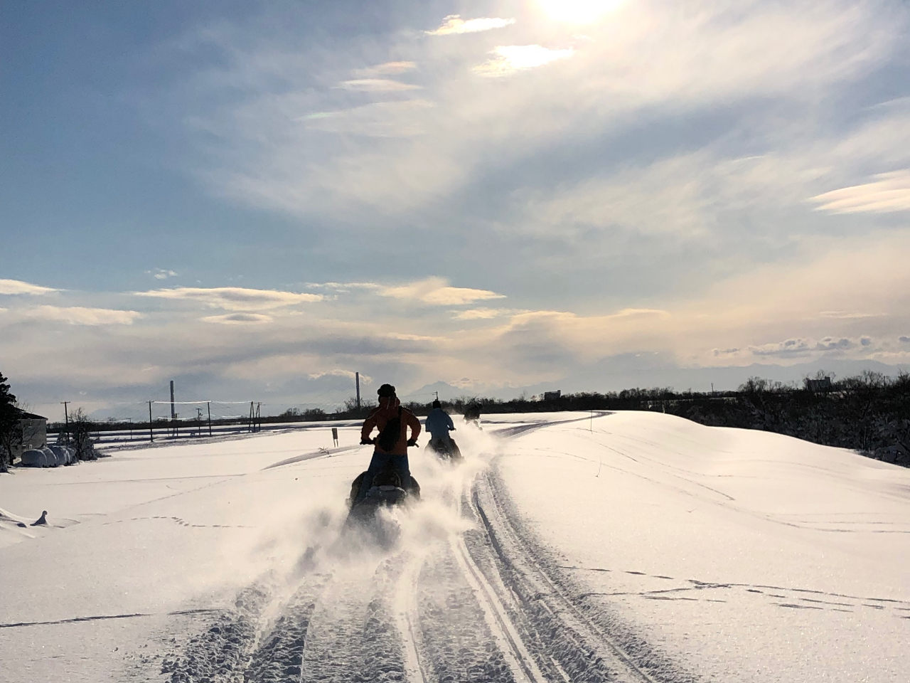 北海道に年末年始、毎年旅行しておりスノーモービル6時間体験コースの貴重なアクティビティを発見。最寄り駅より送迎していただきました。防寒着を着装して練習開始。斜面でのハンドル操作は立乗りや片側乗りを教えてもらい、いざ石狩川を北上。誰も足を踏み入れていない新雪の中を走行できとても気持ちが良い。興奮が止まらない。