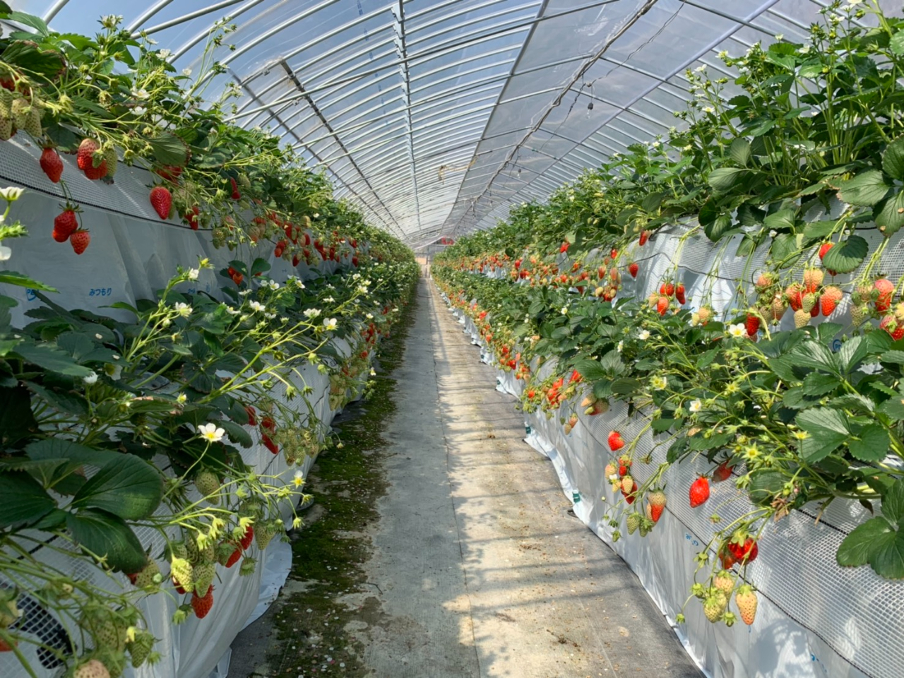 ▼当園は高設栽培のハウスでいちごを育てています!