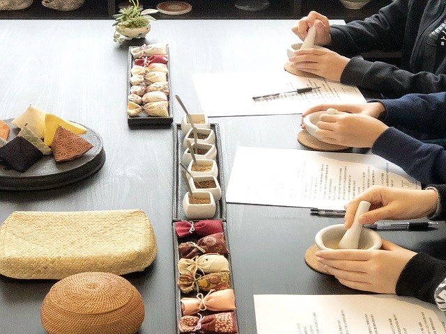8種類の天然香料をオリジナルに調合して作る、香り袋作り体験♪
