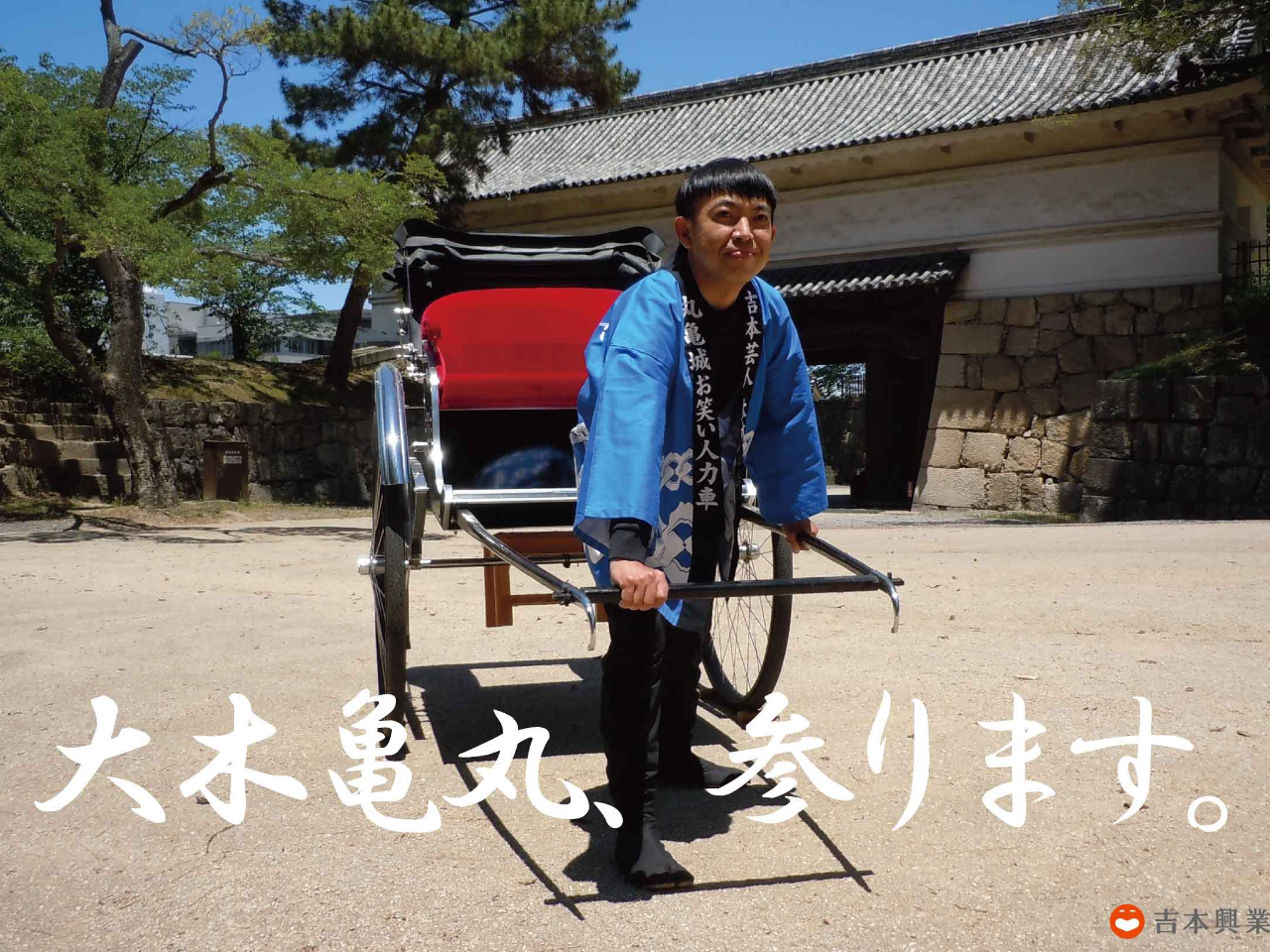 人力車を引くのは、よしもと芸人の『大木亀丸』。
