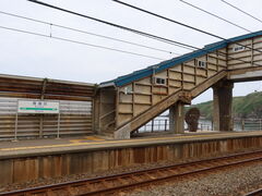 話題のスポットなので、撮り鉄がたくさんいて、せっかくの風情が壊れてしまっていたら嫌だなあと思っていたんですが、単なる普通の土曜日で、しかも、観光にはあいにくの空模様と言こともあってか、駅のホームはスッカスカ状態でした。