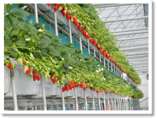 ☆高設養液栽培システムだから立ったまま楽な姿勢でイチゴ狩りができます!