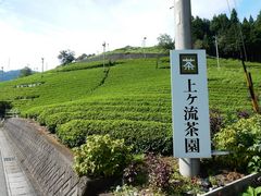 山間に開けた茶畑と集落がマチュピチュのような話題のスポット。海抜300m以上の高地にある上ヶ流地区は寒暖の差が激しく、お茶の栽培に適しておりその歴史は160年を超える。県道から10分ほど山道を登ると、山頂まで続く茶畑が忽然と現れる。急で険しい山肌のお茶の畝はまさに「天空の茶畑」。ここのお茶は、中国から入ってきたといわれる品種に改良が加えられていない在来種で、日本に3%ほどの貴重な品種。また、標高が高く害虫がつきにくい土地のため、地区全体が無農薬栽培。丘陵地に段々茶畑が広がる展望台からの眺めは海外に来たような気分になる。景色を堪能した後は麓の茶園でお茶やお菓子で一休み。