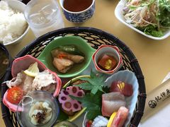 桃を買いに道の駅の帰りに寄らせていただきました。かご御膳を頂きましたが、色々な種類のお料理を楽しめ、天ぷらはアツアツでお刺身は新鮮で大変満足しました。