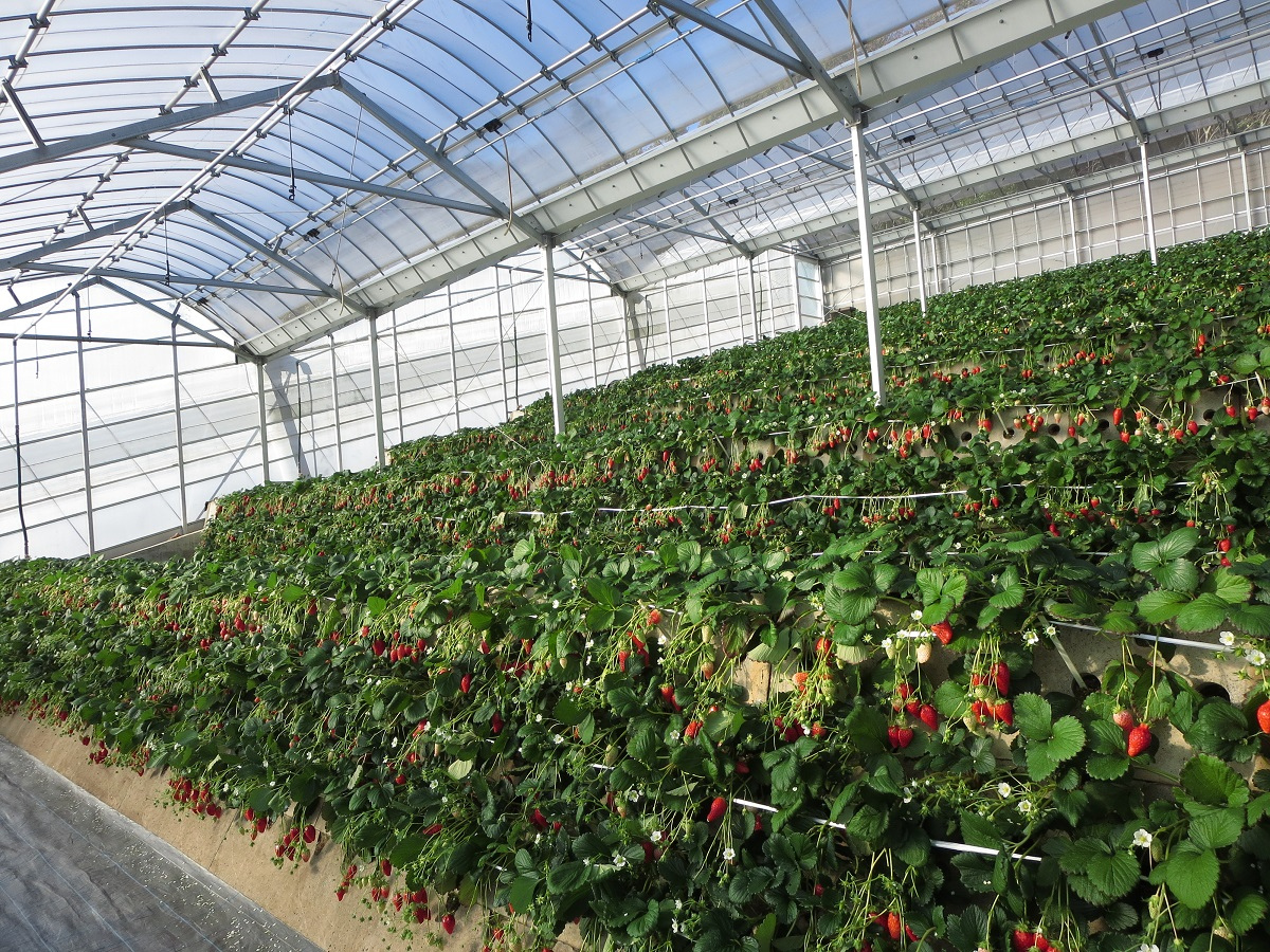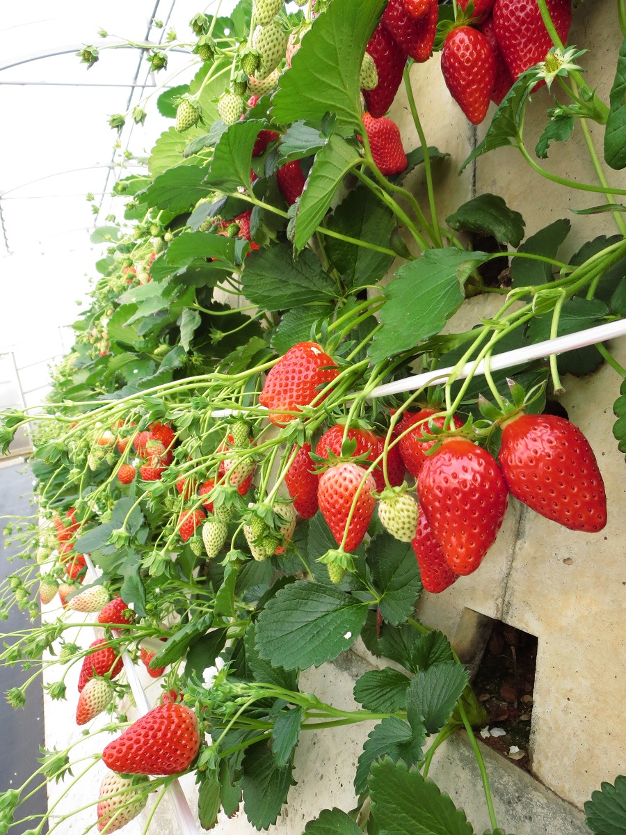 山の斜面を利用した石垣いちごは日差しをたくさん浴びているから美味しい!
